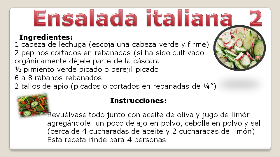 Recetas de cocina ofrecidas en el programa Clinica Abierta.